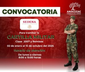 El H. Ayuntamiento de Amacuzac, encabezado por tu amigo Noé Reynoso Nava, te invita a tramitar tu Cartilla del Servicio Militar Nacional.