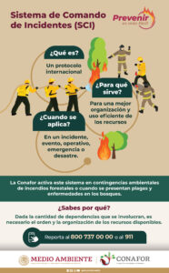 Bajo el Sistema de Comando de Incidentes (SCI), un protocolo internacional que permite una mejor organización y uso eficiente de recursos, se busca evitar y controlar incendios forestales, así como atender emergencias ambientales.