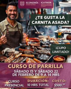 El Instituto de Capacitación para el Trabajo del Estado de Morelos (Icatmor), en coordinación con el presidente municipal Noé Reynoso Nava y la Dirección de Desarrollo Económico, trae para ti una excelente oportunidad: el Curso de Parrilla en Puente de Ixtla, diseñado para quienes buscan perfeccionar sus habilidades culinarias.