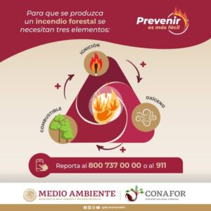 Para que un incendio forestal ocurra, se requieren tres elementos clave: ignición, oxígeno y combustible. Si eliminamos uno de estos factores, podemos prevenir tragedias ambientales.